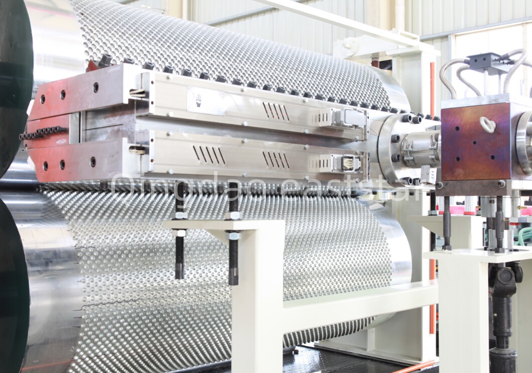 排水板生產(chǎn)線生產(chǎn)的產(chǎn)品具有均勻的凸點(diǎn)結(jié)構(gòu)和穩(wěn)定的排水性能。