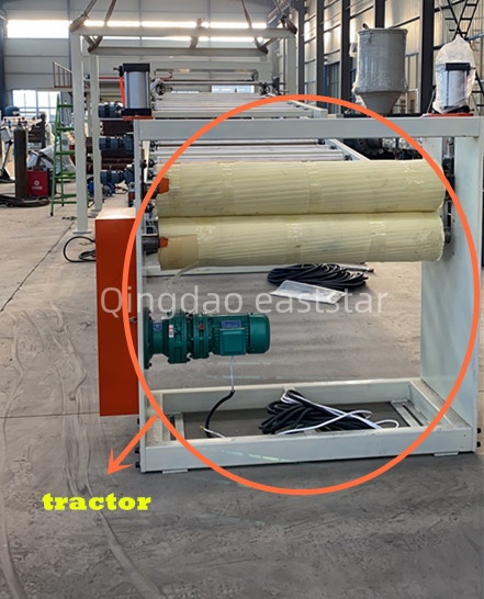 整條多層共擠生產(chǎn)線還包含兩臺液壓換網(wǎng)器、8米冷卻托架和牽引裁斷系統(tǒng)。換網(wǎng)器采用臺灣液壓元件,實現(xiàn)不停機(jī)換網(wǎng)。牽引機(jī)配備Φ240×2500mm丁腈膠輥,通過2.2KW電機(jī)驅(qū)動,實現(xiàn)與三輥的同步調(diào)速。ABS共擠板材設(shè)備的電控系統(tǒng)采用西門子S7系列PLC和觸摸屏,配合ABB變頻器,確保整線協(xié)調(diào)運(yùn)行。