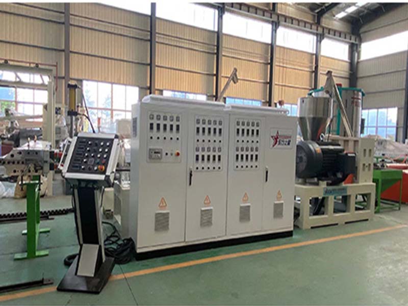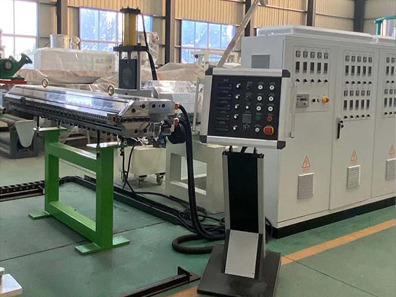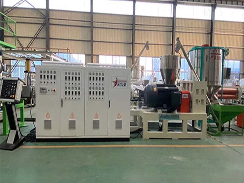 該生產(chǎn)線采SJ-150-35比1單螺桿排氣擠出機、西門子電機、高扭矩硬齒面減速機、液壓換網(wǎng)器、T型衣架式可調(diào)模具、立式三輥壓光機、并可根據(jù)客戶需求配備在線覆皮革裝置、三合一水溫機、不銹鋼冷卻托架裝并裝有寬幅可調(diào)切邊刀、橡膠輥牽引機、自動定尺剪板機。生產(chǎn)線采用立體電控柜:日本歐姆龍智能溫控儀、西門子低壓電器、國內(nèi)外馳名變頻器。所生產(chǎn)的板材經(jīng)二次熱成型后,主要于汽車儀表板、車門內(nèi)裝板、代步車、高爾夫汽車等外殼;還可用于各種拉桿箱、行李箱等。