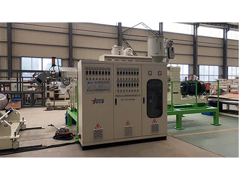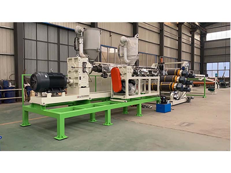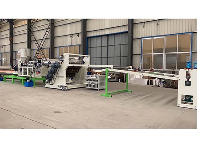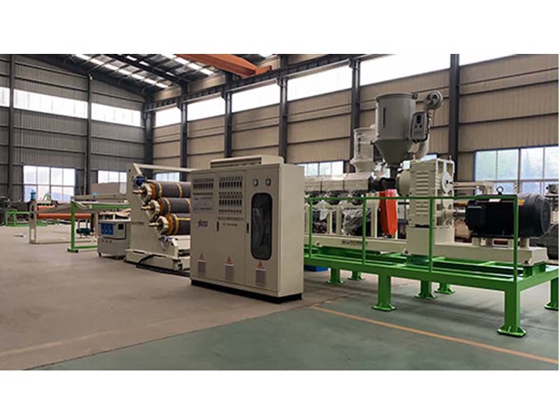 PP三層共擠片材生產(chǎn)線:可生產(chǎn)寬度750-1500毫米、厚度0.2-2毫米、單層/雙層/三層的塑料片材。該設(shè)備采SJ90-33/1和SJ75-30/1單螺桿擠出機、液壓自動換網(wǎng)器、A+B+A三層共擠分配器、T型彈性模口可調(diào)模具、斜45度三輥壓光機、三合一水溫機、不銹鋼冷卻托架并裝有寬幅可調(diào)切邊刀、橡膠輥牽引機、雙工位氣漲軸收卷機。生產(chǎn)線采用符合人體工位學(xué)的電控柜:歐姆龍智能溫控系統(tǒng)、西門子低壓電器、國內(nèi)外馳名品牌變頻調(diào)速器。